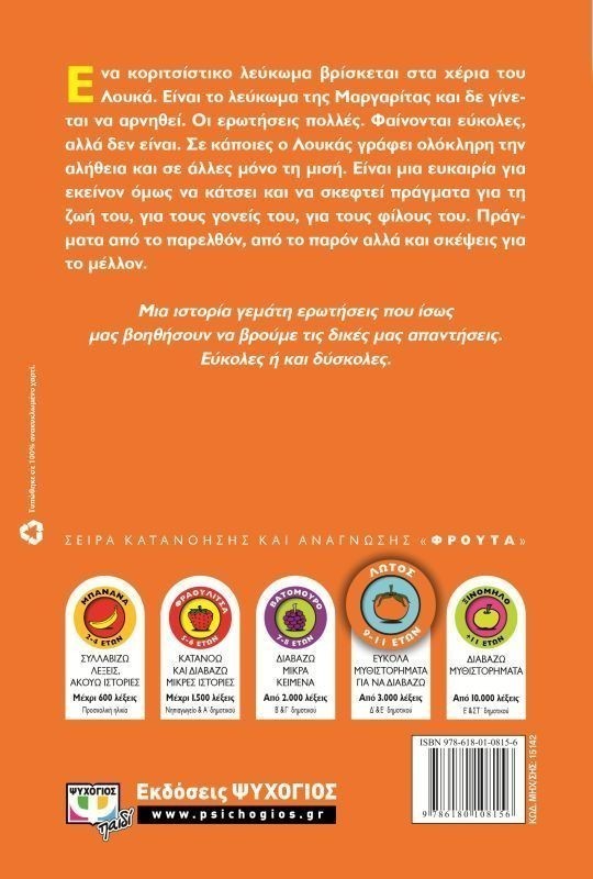 Ένα κοριτσίστικο λεύκωμα βρίσκεται στα χέρια του Λουκά. Είναι το λεύκωμα της Μαργαρίτας και δε γίνεται να αρνηθεί. Οι ερωτήσεις πολλές. Φαίνονται εύκολες, αλλά δεν είναι. Σε κάποιες ο Λουκάς γράφει ολόκληρη την αλήθεια και σε άλλες μόνο τη μισή. Είναι μια ευκαιρία για εκείνον όμως να κάτσει και να σκεφτεί πράγματα για τη ζωή του, για τους γονείς του, για τους φίλους του. Πράγματα από το παρελθόν, από το παρόν αλλά και σκέψεις για το μέλλον.