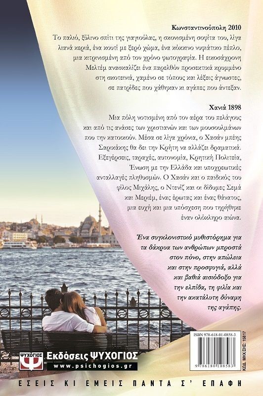 Κωνσταντινούπολη, 2010 Το παλιό, ξύλινο σπίτι της γιαγιούλας, η σκονισμένη σοφίτα του, λίγα λιανά κεριά, ένα κουτί με ξερό χώμα, ένα κόκκινο νυφιάτικο πέπλο, μια κιτρινισμένη απ? το χρόνο φωτογραφία. Η εικοσάχρονη Μελτέμ ανασκαλίζει ένα παρελθόν προσεκτικά κρυμμένο στη σκοτεινιά, χαμένο σε τόπους και λέξεις άγνωστες, σε πατρίδες που χάθηκαν κι αγάπες που άντεξαν. Χανιά, 1898 Μια πόλη νοτισμένη από τον αέρα του πελάγους κι από τις ανάσες των χριστιανών και των μουσουλμάνων που την κατοικούν. Μέσα σε λίγα χρόνια, ο Χασάν μπέης Σαρικάκης, θα δει την Κρήτη ν? αλλάζει δραματικά. Εξεγέρσεις, ταραχές, αυτονομία, Κρητική Πολιτεία, Ένωση με την Ελλάδα και υποχρεωτικές ανταλλαγές πληθυσμών. Ο Χασάν κι ο παιδικός του φίλος Μιχάλης, ο Ντενίζ κι οι δίδυμες Σεμά και Μεριέμ, ένας έρωτας κι ένας θάνατος, μια ευχή και μια υπόσχεση που τηρήθηκε έναν ολόκληρο αιώνα. Ένα συγκλονιστικό μυθιστόρημα για τα δάκρυα των ανθρώπων μπροστά στον πόνο, στην απώλεια και στην προσφυγιά αλλά και βαθιά αισιόδοξο για την ελπίδα, τη φιλία και την ακατάλυτη δύναμη της αγάπης.