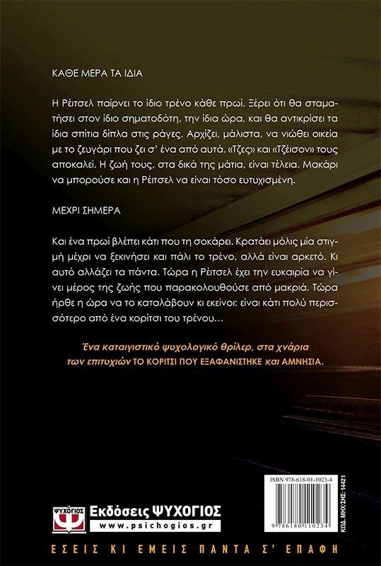 Και μια μέρα βλέπει κάτι που τη σοκάρει. Κρατάει μόλις μία στιγμή μέχρι να ξεκινήσει και πάλι το τρένο, αλλά είναι αρκετό. Κι αυτό αλλάζει τα πάντα. Τώρα η Ρέιτσελ έχει την ευκαιρία να γίνει μέρος της ζωής που παρακολουθούσε από μακριά. Τώρα ήρθε η ώρα να το καταλάβουν κι εκείνοι: είναι κάτι πολύ περισσότερο από ένα κορίτσι του τρένου?