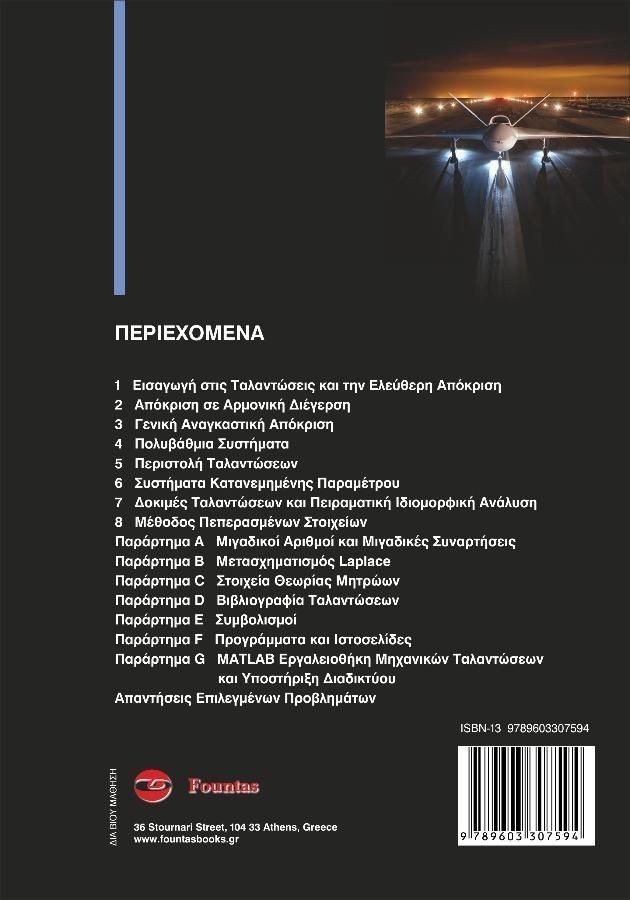 ΠΕΡΙΕΧΟΜΕΝΑ 1 ΕΙΣΑΓΩΓΗ ΣΤΙΣ ΤΑΛΑΝΤΩΣΕΙΣ ΚΑΙ ΤΗΝ ΕΛΕΥΘΕΡΗ ΑΠΟΚΡΙΣΗ 2 ΑΠΟΚΡΙΣΗ ΣΕ ΑΡΜΟΝΙΚΗ ΔΙΕΓΕΡΣΗ 3 ΓΕΝΙΚΗ ΑΝΑΓΚΑΣΤΙΚΗ ΑΠΟΚΡΙΣΗ 4 ΠΟΛΥΒΑΘΜΙΑ ΣΥΣΤΗΜΑΤΑ 5 ΠΕΡΙΣΤΟΛΗ ΤΑΛΑΝΤΩΣΕΩΝ 6 ΣΥΣΤΗΜΑΤΑ ΚΑΤΑΝΕΜΗΜΕΝΗΣ ΠΑΡΑΜΕΤΡΟΥ 7 ΔΟΚΙΜΕΣ ΤΑΛΑΝΤΩΣΕΩΝ ΚΑΙ ΠΕΙΡΑΜΑΤΙΚΗ ΙΔΙΟΜΟΡΦΙΚΗ ΑΝΑΛΥΣΗ8 ΜΕΘΟΔΟΣ ΠΕΠΕΡΑΣΜΕΝΩΝ ΣΤΟΙΧΕΙΩΝΠροβλήματα MATLAB Εργαλειοθήκη Μηχανικών Ταλαντώσεων Προβλήματα Εργαλειοθήκης ΠΑΡΑΡΤΗΜΑ Α ΜΙΓΑΔΙΚΟΙ ΑΡΙΘΜΟΙ ΚΑΙ ΜΙΓΑΔΙΚΕΣ ΣΥΝΑΡΤΗΣΕΙΣ, 681 ΠΑΡΑΡΤΗΜΑ Β ΜΕΤΑΣΧΗΜΑΤΙΣΜΟΣ LAPLACE ΠΑΡΑΡΤΗΜΑ C ΣΤΟΙΧΕΙΑ ΘΕΩΡΙΑΣ ΜΗΤΡΩΩΝ ΠΑΡΑΡΤΗΜΑ D ΒΙΒΛΙΟΓΡΑΦΙΑ, ΤΑΛΑΝΤΩΣΕΩΝ ΠΑΡΑΡΤΗΜΑ Ε ΣΥΜΒΟΛΙΣΜΟΙ ΠΑΡΑΡΤΗΜΑ F ΠΡΟΓΡΑΜΜΑΤΑ ΚΑΙ ΙΣΤΟΣΕΛΙΔΕΣ ΠΑΡΑΡΤΗΜΑ G ΜΑΤLAB ΕΡΓΑΛΕΙΟΘΗΚΗ ΜΗΧΑΝΙΚΩΝ ΤΑΛΑΝΤΩΣΕΩΝ ΚΑΙ ΥΠΟΣΤΗΡΙΞΗ ΔΙΑΔΙΚΤΥΟΥ ΑΠΑΝΤΗΣΕΙΣ ΕΠΙΛΕΓΜΕΝΩΝ ΠΡΟΒΛΗΜΑΤΩΝ. ΕΥΡΕΤΗΡΙΟ.