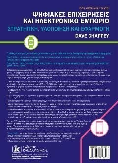 Αυτή η έκτη έκδοση του βιβλίου θα κρατήσει αμείωτο το ενδιαφέρον σας είτε σπουδάζετε το αντικείμενο του ψηφιακού επιχειρείν και του ηλεκτρονικού εμπορίου είτε είσαστε διοικητικό στέλεχος σε κάποια επιχείρηση απαντώντας σε όλες τις ερωτήσεις σας για το ηλεκτρονικό εμπόριο. Το βιβλίο Ψηφιακές επιχειρήσεις και ηλεκτρονικό εμπόριο καλύπτει όλες τις πτυχές του ψηφιακού επιχειρείν όπως τη στρατηγική, το ψηφιακό μάρκετινγκ και τη διαχείριση της εφοδιαστικής αλυσίδας, συνδυάζοντας ακαδημαϊκές θεωρίες με επαγγελματικές πρακτικές, και προσφέρει: Μια δομημένη προσέγγιση για την κατάρτιση και υλοποίηση της στρατηγικής ηλεκτρονικού εμπορίου για όλους τους τύπους επιχειρήσεων. Εκτενή αναφορά στη δημιουργία ενιαίας εμπειρίας για τους επιτραπέζιους υπολογιστές και τις φορητές συσκευές Μελέτες περιπτώσεων νεοφυών επιχειρήσεων και μεγάλων εταιρειών που αναπτύχθηκαν καταστρώνοντας αποτελεσματικές στρατηγικές ψηφιακού επιχειρείν. Μια τοποθεσία Ιστού (στα αγγλικά) με συνοδευτικό υλικό για τις εξελίξεις στον χώρο του ψηφιακού επιχειρείν και του ηλεκτρονικού εμπορίου από το ιστολόγιο του Dave Chaffey.