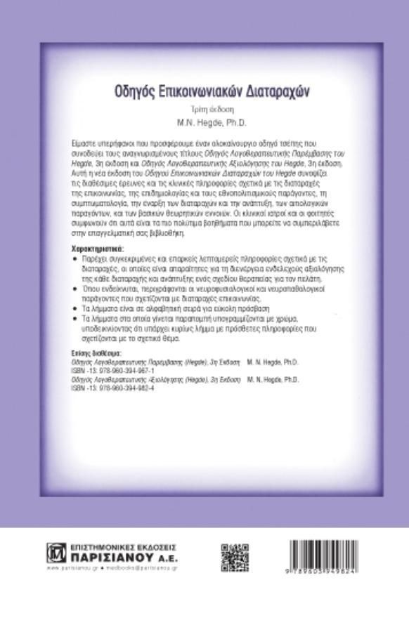 Η έλλειψη επιστημονικών εγχειριδίων στην ελληνική γλώσσα για τη λογοθεραπεία, στα οποία ο αναγνώστης μπορεί να βρει όλες τις πληροφορίες, υλικά και διαδικασίες που χρειάζεται σχετικά με την αξιολόγηση της επικοινωνίας και των διαταραχών της σε έναν οδηγό, αποτέλεσε τον λόγο μετάφρασης αυτού του οδηγού λογοθεραπευτικής αξιολόγησης. Το βιβλίο αυτό αποτελεί ένα εξαιρετικό εργαλείο για λογοθεραπευτές και άλλους ειδικούς, όπως εκπαιδευτικοί, νοσηλευτές, εργοθεραπευτές, φυσικοθεραπευτές, αλλά και για διάφορες ιατρικές ειδικότητες.