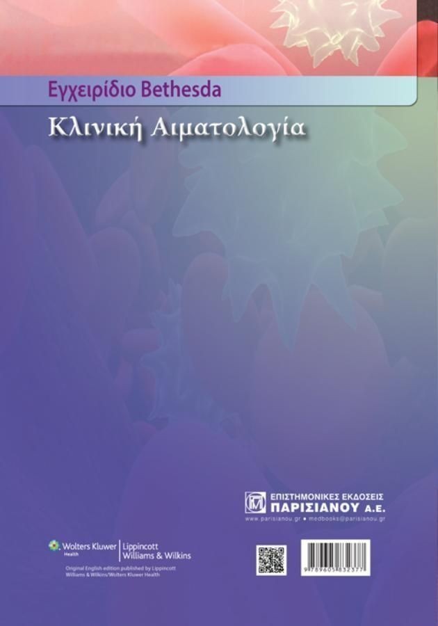Το βιβλίο «Εγχειρίδιο Bethesda, Κλινική Αιματολογία», 3η έκδοση, θα έπρεπε να μη λείπει από την τσέπη της ιατρικής ποδιάς του φοιτητή, του κλινικού ιατρού ή του αιματολόγου/ογκολόγου και από την τσάντα του παθολόγου, του κλινικού ιατρού, του οικογενειακού ιατρού και του παιδίατρου που επισκέπτεται ασθενείς με αιματολογικά νοσήματα.