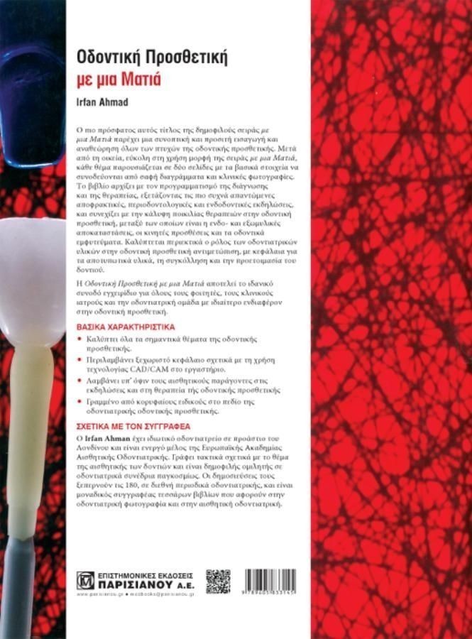 Η «Οδοντική Προσθετική με μια Ματιά» είναι ένα εξαιρετικό εγχειρίδιο για τον φοιτητή, αλλά και τον ειδικό, ιδανικό βιβλίο αναφοράς που κερδίζει μια ξεχωριστή θέση στη βιβλιογραφία της Οδοντιατρικής.