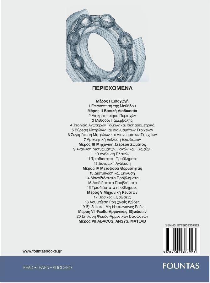Ανάλυση Ελευθέρων Ταλαντώσεων, Ανάλυση Πεπερασμένων Στοιχείων με το Abaqus, Ανάλυση Πεπερασμένων Στοιχείων με το Ansys, Ανάλυση Πεπερασμένων Στοιχείων με το Matlab, Ανάλυση Χωροδικτυωμάτων, Αξονοσυμμετρικά Προβλήματα, Αστρόβιλη Ροή, Αυτόματη Δημιουργία Πλέγματος, Δευτεροβάθμιο Τριγωνικό Στοιχείο, Διδιάστατη Ανάλυση Μεταφοράς Θερμότητας, Δοκιμή Επιθέματος, Ενσωμάτωση Συνοριακών Συνθηκών, Ενσωμάτωτη Οριακών Συνθηκών, Εξίσωση Συνέχειας, Εξαεδρικό Στοιχείο, Επίλυση Συστήματος Γραμμικών Εξισώσεων με τη Μέθοδο του Choleski, Επίλυση της Εξίσωσης Poisson, Επίλυση των εξισώσεων Navier-Stokes, Ισοπαραμετρικά Στοιχεία, Ισχυρή και Ασθενής Διατύπωση, Λύση Πεπερασμένων Στοιχείων με την Μέθοδο Galerkin, Μέθοδος Ποινής, Μέθοδος των Υποδομημάτων, Μη Σταθεροκατάστατα Προβλήματα, Ορθογώνιος Δίσκος, Παροδικά Προβλήματα Πεδίου, Στοιχείο Τρισδιάστατου Πλαισίου, Στοιχείο Χωροδικτυώματος, Στρέψη Ατράκτων, Τετραεδρικό Στοιχείο, Τριγωνικό Μεμβρανικό Στοιχείο, Τριγωνικό Στοιχείο Καμπτόμενης Πλάκας, Τρισδιάστατα Προβλήματα Μεταφοράς Θερμότητας, Φορμαλισμοί Μηχανικής Στερεού και Δομομηχανικής