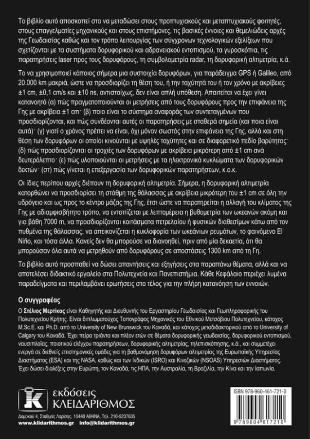 Το βιβλίο αυτό απευθύνεται τόσο σε προπτυχιακούς και μεταπτυχιακούς φοιτητές όσο και σε επαγγελματίες μηχανικούς και επιστήμονες. Αναλύονται διεξοδικά οι θεμελιώδεις αρχές της Γεωδαισίας καθώς και οι σύγχρονες τεχνολογικές εξελίξεις που σχετίζονται μεταξύ άλλων με τα συστήματα δορυφορικού και αδρανειακού εντοπισμού, τα γυροσκόπια, τις παρατηρήσεις laser προς τους δορυφόρους, τη συμβολομετρία radar και τη δορυφορική αλτιμετρία.