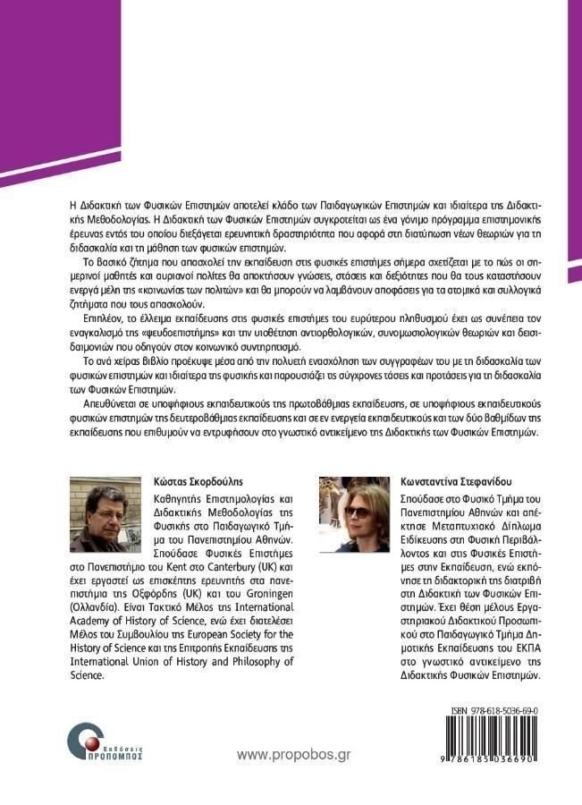Το ανά χείρας βιβλίο προέκυψε μέσα από την πολυετή ενασχόληση των συγγραφέων του με τη διδασκαλία των φυσικών επιστημών και ιδιαίτερα της φυσικής και παρουσιάζει τις σύγχρονες τάσεις και προτάσεις για τη διδασκαλία των Φυσικών Επιστημών.