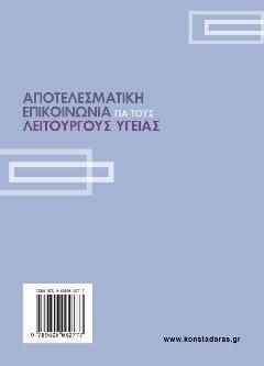 Βεβαιωθείτε ότι έχετε τις δεξιότητες για να επικοινωνείτε αποτελεσματικά με ασθενείς και άλλους επαγγελματίες υγείας! Με το ευανάγνωστο στυλ του, το βιβλίο Αποτελεσματική Επικοινωνία για τους Λειτουργούς Υγείας, 2η αγγλική έκδοση, είναι γεμάτο με χρήσιμες συμβουλές και ασκήσεις που θα σας βοηθήσουν να μάθετε την καθολική (και απαραίτητη) πρακτική της επικοινωνίας. Αυτή η έγχρωμη δεύτερη έκδοση αντικατοπτρίζει τις τρέχουσες θεραπευτικές τεχνικές, συμπεριλαμβανομένων των πλαισίων χαρακτηριστικών κατευθυντήριων γραμμών επικοινωνίας, πλαισίων διαλόγου , πρόσθετων περιπτώσεων και ολοκαίνουργιο περιεχόμενο που εξερευνά τα πιο σύγχρονα εργαλεία επικοινωνίας στο σύγχρονο περιβάλλον υγειονομικής περίθαλψης. Οι ερωτήσεις και οι ασκήσεις στο τέλος του κεφαλαίου σάς βοηθούν να χρησιμοποιήσετε τη γνώση που αποκτήσατε από τα θέματα που παρουσιάζονται στο κεφάλαιο. Νέα κεφάλαια σε αυτήν την έκδοση: