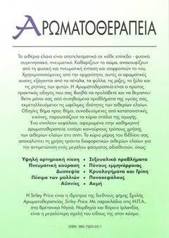 Τα αιθέρια έλαια είναι αποτελεσματικά σε κάθε επίπεδο - φυσικό , συγκινησιακό , πνευματικό . Καθαρίζουν το σώμα , ανακουφίζουν από τη φυσική και πνευματική ένταση και ισορροπούν το νου . Χρησιμοποιούμενες από την αρχαιότητα , αυτές οι αρωματικές ουσίες εξάγονται από τα πέταλα , τα φύλλα , τις ρίζες , το ξύλο και τις ρητίνες των φυτών . Η Αρωματοθεραπεία είναι ο πρώτος πρακτικό οδηγός που σας βοηθά να προλάβετε και να θεραπευθείτε μόνοι σας από συνηθισμένα προβλήματα της υγείας σας , εκμεταλλευόμενοι τις ωφέλιμες ιδιότητες των αιθερίων ελαίων . Οδηγίες βήμα προς βήμα , συνοδευόμενες από κατατοπιστικές εικόνες , παρουσιάζουν τα κύρια στάδια της αγωγής . Ένα επιπλέον κεφάλαιο , αφιερωμένο στην καθημερινή αρωματοθεραπεία , εισάγει καινούργιους τρόπους χρήσης των αιθερίων ελαίων στο σπίτι . Το κύριο μέρος του βιβλίου σας αποκαλύπτει τη χρήση τριάντα διαφορετικών αιθερίων ελαίων για την αντιμετώπιση ενό μεγάλου φάσματος αδιαθεσιών , όπως : ΥΨΗΛΗ ΑΡΤΗΡΙΑΚΗ ΠΙΕΣΗ . ΠΝΕΥΜΑΤΙΚΗ ΚΟΥΡΑΣΗ . ΔΥΣΠΕΨΙΑ . ΠΕΣΙΜΟ ΤΩΝ ΜΑΛΛΙΩΝ . ΑΫΠΝΙΕΣ . ΣΕΞΟΥΑΛΙΚΑ ΠΡΟΒΛΗΜΑΤΑ . ΠΟΝΟΥΣ ΕΜΜΗΝΟΡΡΟΙΑΣ . ΚΡΥΟΛΟΓΗΜΑΤΑ ΚΑΙ ΓΡΙΠΠΗ . ΠΟΝΟΚΕΦΑΛΟΥΣ . ΑΚΜΗ .